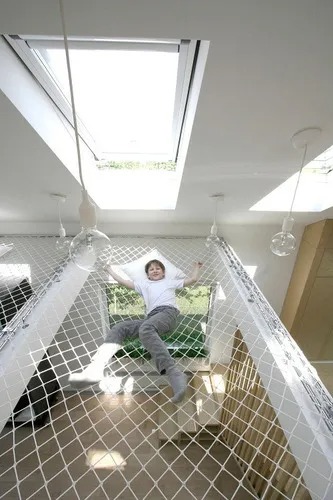 A utilização de uma rede suspensa para deitar tem se tornado muito comum hoje em dia, especialmente por sua versatilidade. Esta nova modalidade de rede é ideal para aproveitar espaços com mezanino ou pé direito alto, formando uma rede na horizontal estilo uma cama elástica, deixando o espaço propício para o lazer e descanso da família com muito conforto e segurança. A rede é ideal também para brinquedos de escalada muito utilizados em escolas e playgrounds, permitindo diversão e proteção ao mesmo tempo.